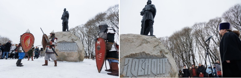 Открытие памятника собрало значительное число жителей и представителей культурной общественности. Среди присутствующих были поклонники творчества известного российского скульптора Андрея Мартьянова, автора монумента, чьи работы украшают многие российские города. Церемония началась с показательных выступлений клубов исторической реконструкции «Плесков-град» и «Псковская вольница».