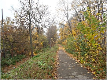 Останки Быковской башни. Слева от дороги - сохранившийся ров, справа от дороги - стена Фото: осень 2013 год Вдоль всех стены Окольного города раньше проходил глубокий ров, от которого в наше время сохранились остатки в виде прудов и топких мест. Он и сейчас еще виден слева от дороги по пути от Варлаамовского захаба на северо-восток.
