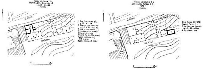 Флигель дома Герасимова В.П. Генплан участка. Дом жилой Котова А.Д. Генплан. Таким образом, застройка Розова (Летнего) переулка окончательно исчезла в 2001 г., а единственный оставшийся от неё дом к этому времени имел адрес: № 7а по ул. Герцена, как и вся застройка до Верхне-Береговой, название которой было аннулировано после войны. На нижнем снимке видны крупные здания по берегам Псковы. На правом берегу бухгалтер Земского банка Владимир Седельщиков в 1890 году поставил трехэтажную кирпичную надстройку на мощные плиточные стены XVII века (Герцена, 5).