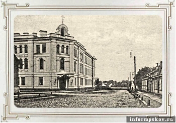 На фото: Епархиальное училище в Пскове. Спасская улица Епархиальное училище в Пскове ещё 14 октября 1884 года открыл псковский епископ Нафанаил. Однако он недолго возглавлял Псковскую епархию и уже 9 марта 1885 года его сменил Гермоген. В епархиях Гермоген заботился о просвещении паствы при помощи духовно-просветительных обществ и внебогослужебных бесед, о призрении вдов и сирот духовенства, о воспитании его детей. 17 декабря 1885-го Гермоген утвердил устав Кирилло-Мефодиевского братства при Псковском кафедральном Троицком соборе. В задачу братства входило оказание материальной поддержки Епархиальному женскому училищу и церковно-приходским школам епархии. За первый год членами братства собраны значительные денежные суммы, большую часть их зачислили в основной капитал, меньшую часть передали учебным заведениям. О Псковском епархиальном женском училище епископ говорил: "Это детище моё!" Дочери священников обучались в заведении бесплатно, девочки из других сословий — за плату.
