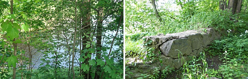 Река Пскова. Руины мельницы. Фото: 2013 год Юго-западнее дома располагался некогда парк, сохранившаяся часть которого позволяет говорить о пейзажном характере и высоком уровне его архитектурно-планировочной организации. Основной композиционной осью парка являлась система искусственных прудов, устроенная с хорошим знанием гидрологии местности. Из всей системы сохранились только два пруда.
