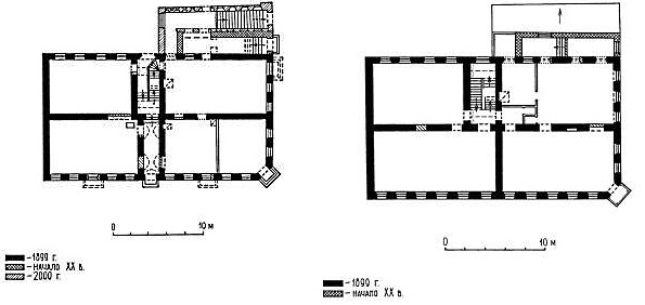 Дом жилой Степанова Иванаг. Псков, ул. Леона Поземского, д. 3/2 Историческая справка Участок с постройками на углу улиц Варлаамской (Нарвской, ныне Л. Поземского) и Богоявленской (ныне Герцена) в конце XIX в. принадлежал псковской купеческой вдове Варваре Васильевне Гуляевой. На участке находился полукаменный 2-х этажный дом с пристройками, оценивавшийся в 2375 руб. В 1898 г. крестьянин Степанов Иван за ссуду в 10500 рублей до 1906 г. заложил свое имущество, заключавшееся "в строениях с землею под ними находящегося в г. Пскове в III части на Запсковье по Нарвской и Богоявленской улице" в Санкт-Петербургско-Тульском Поземельной банке. Из дела не видно, какие именно строения находились на участке в момент залога в 1898 г., был ли уже построен дом, или ссуда была В Раскладочных ведомостях за 1899 г. имеются сведения о том, что на данном участке уже существует каменный 2-х этажный дом и полукаменный 2-х этажный флигель. Построки оценены в 5075 руб. Следовательно, датой постройки дома следует считать 1899 год.