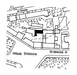 Банк земский. Кладовые. 1902 г. Генплан. г. Псков, Октябрьский пр-т, 8 Все балки в кладовых металлические и покрыты кладовые железом. Кладовые предназначены для Общества потребителей, ссудной кассы и складов Общества взаимного кредита. Рядом устроено помещение для дворника в 2 комнаты". В отчете также приведены сведения о благоустройстве двора, что с северо-западной стороны "на протяжении 9.1/2 сажен (20.25 м) устроен кирпичный в 5 аршин (3.5 м) высоты забор. На дворе 3 цементные ямы, двор спланирован и вымощен. Все работы по введению в эксплуатацию были завершены в начале 1902 г. В послевоенное время, когда в здании бывшего земского банка разместился филиал Госбанка СССР, здание кладовых использовалось как гараж и, частично, под склад. Частично заложены первоначальные проемы ворот. Утрачены первоначальные полы, столярные изделия, крыша и материал кровли - железо. Деревянные столбики, поддерживавшие крыши над загрузочными балконами мансардного этажа, заменены на металлические трубы. Над печными трубами установлены новые дымники (сведения о наличии их прежде не сохранились). Печи утрачены. Наружная лестница ледника, первоначально бывшая перпендикулярно фасадной стене, ныне перестраивается вдоль стены. Внутреннее оборудование ледника не сохранилось.