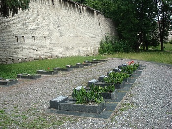 Здесь воздвигнуты два памятника: на сером фоне крепостной стены четко выделяется четырехгранный обелиск в честь борцов революции, а невдалеке от него, среди деревьев и кустарников у Михайловской горки, стоит скромный памятник из черного гранита на могиле Леона Поземского – первого вожака псковских комсомольцев. Оба они связаны с событиями гражданской войны. Памятник Жертвам белого террора