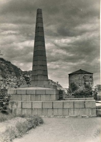 Сквер павших борцов и обелиск в ознаменование Во время Великой Отечественной войны, когда город был оккупирован, немцы решили использовать обелиск на площади Жертв революции в своих целях: убрали чугунную доску с надписью, разобрали до половины сложенную из гранитных блоков стелу и на оставшемся основании установили свастику.