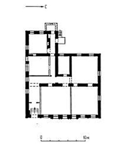 План I этажа. Выполнила Руденко Т.В. 2003 г. До настоящего времени дом дошёл с хорошей сохранностью лепного декора фасада. Однако имеются и утраты: заложены окна подвала на главном фасаде, утрачены кованые ажурные решётки на крыше, ворота между домом и флигелем, кованая ограда. От неё сохранился один фрагмент, но и тот зашит гофрированным металлом.Флигель, в отличие от основного жилого дома, неоднократно перестраивался, поэтому интерьеры и система отопления не сохранились. Основные архитектурные особенности
