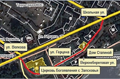 Верхне-Береговая улицаВ древности Верхне-Береговая улица являлась частью Большой Богоявленской улицы (ныне - ул. Герцена), которая была одной из главных магистралей Запсковья в средневековом Пскове.