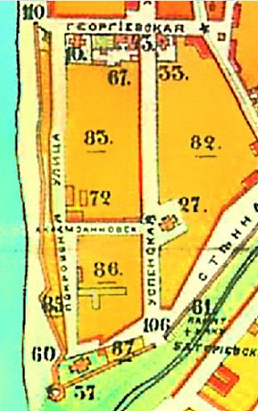 1. Фрагмент карты Пскова 1889 года. Составитель - губернский инженер-архитектор Сатурнин-Войцех Езеровский